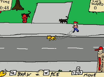 You're a dog and your owner takes you for a walk. Do doggy things like barking and peeing to scare away cats. But who's walking who? Try to break free to achieve maximum mayhem.